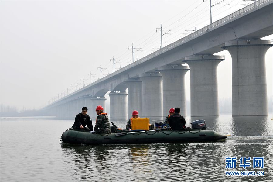 1月3日,中國鐵路濟南局鐵道戰(zhàn)備舟橋處工程人員駕駛船只前往預定地點。新華社記者 朱崢攝