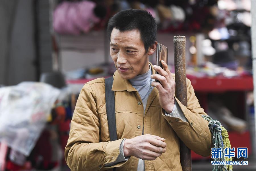冉光輝接到一項搬運業(yè)務的電話(1月5日攝)。新華社記者王全超攝