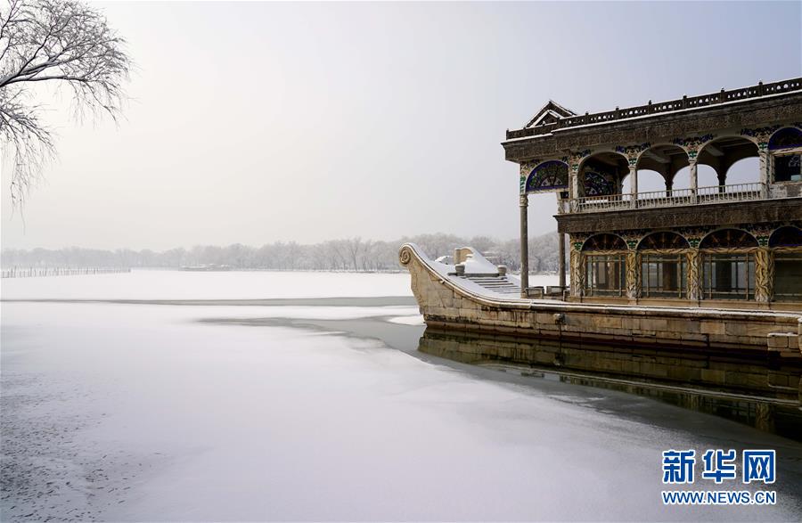 1月6日拍攝的頤和園石舫及昆明湖雪景。1月5日晚,北京迎來2020年首場(chǎng)降雪。雪后的頤和園景色迷人,宛若畫卷。新華社記者陳建力攝