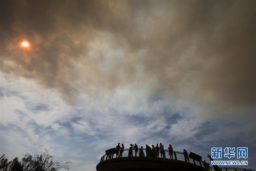 2019年12月21日,在澳大利亞新南威爾士州藍(lán)山地區(qū),市民遠(yuǎn)遠(yuǎn)觀察山火。新華社記者白雪飛攝