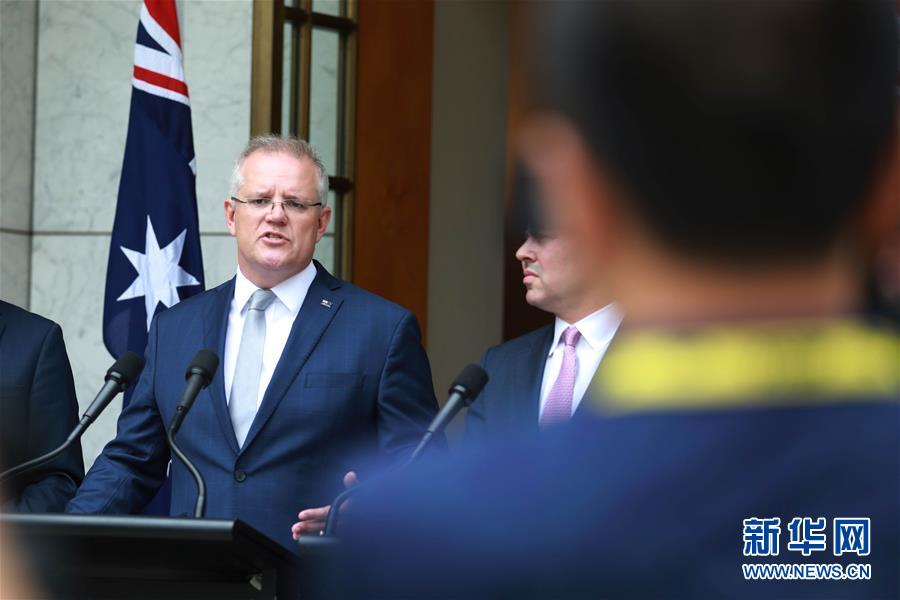 1月6日,在澳大利亞首都堪培拉,澳大利亞總理莫里森(左)在國會(huì)大廈出席新聞發(fā)布會(huì)。新華社記者白旭攝