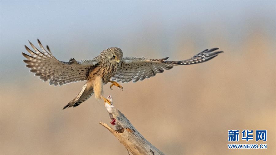 在河北省平山縣黃壁莊水庫(kù)拍攝的紅隼(2019年12月23日攝)。 新華社記者 梅永存 攝