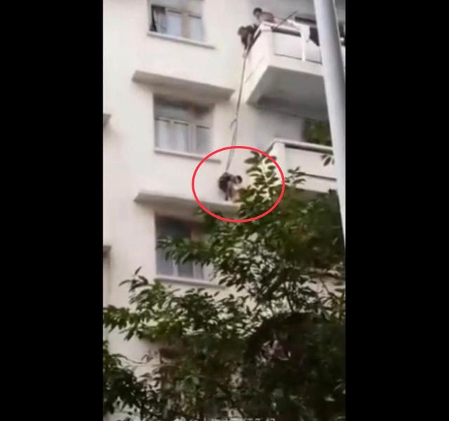 奶奶為救一只貓將孩子從高空用繩索吊下,心是好心,就是沒有安全意識!難怪有網友吐槽:老太太糊涂了嗎?