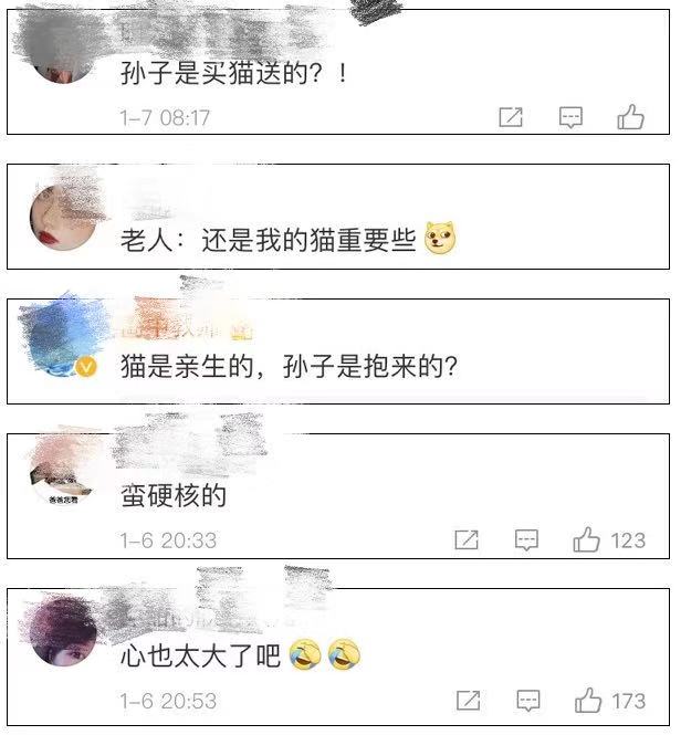 看到這一幕的網友忍不住調侃:難道孫子是奶奶買貓送的?