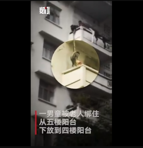 1月5日下午,四川南充市蓬安縣,一奶奶在百順街老百貨公司宿舍樓上,用一根繩子綁著孫子的腰,將其從五樓吊至三樓一窗戶遮雨臺上,只為救一只貓。此舉嚇得周圍鄰居紛紛呼喊:危險!網友:小孩子不懂事,老人是糊涂了嗎?到底誰是親的?