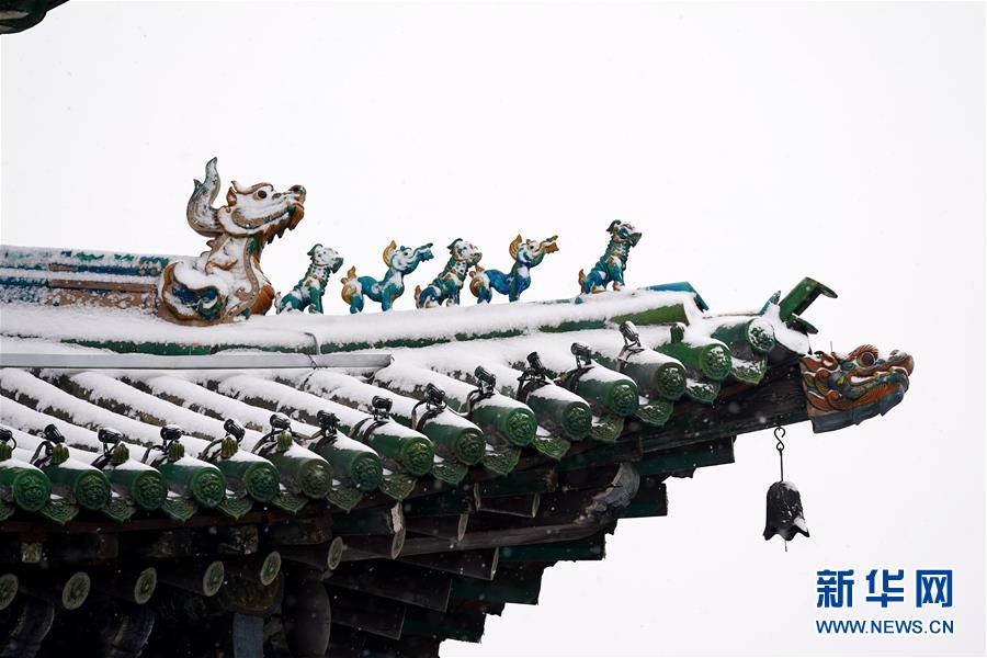 1月5日拍攝的平遙古城迎薰門城樓的外檐斗拱。新華社記者詹彥攝