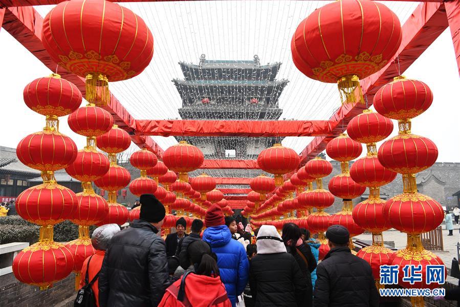 (2019年)2月13日,游客在平遙古城參觀。新華社記者楊晨光攝