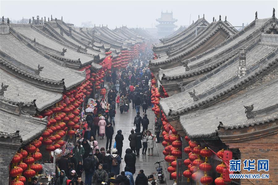 (2019年)2月13日,游客在平遙古城參觀。新華社記者楊晨光攝