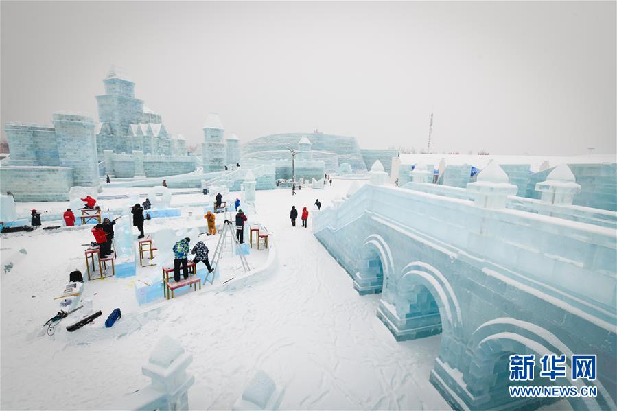 1月7日,參賽者在進行冰雕創(chuàng)作。新華社記者王松攝