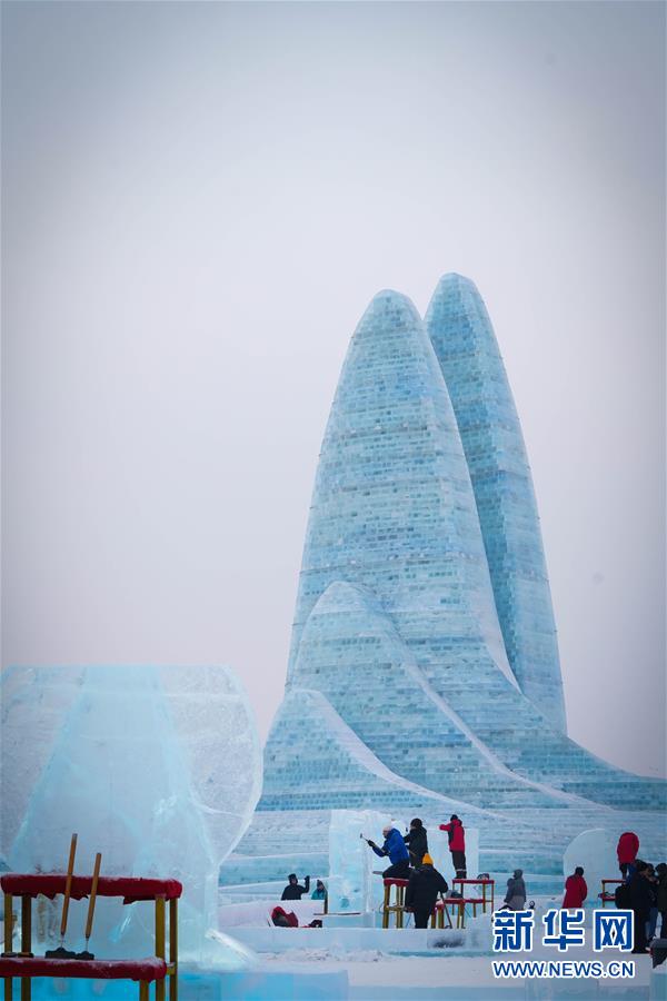 1月6日,參賽者在創(chuàng)作冰雕。新華社記者王松攝