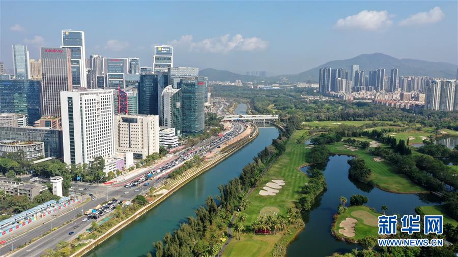 這是1月7日拍攝的深圳南山區(qū)大沙河兩岸景觀(無人機(jī)照片)。 新華社記者 梁旭 攝