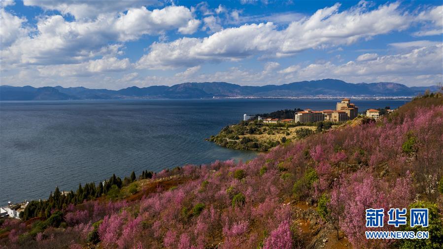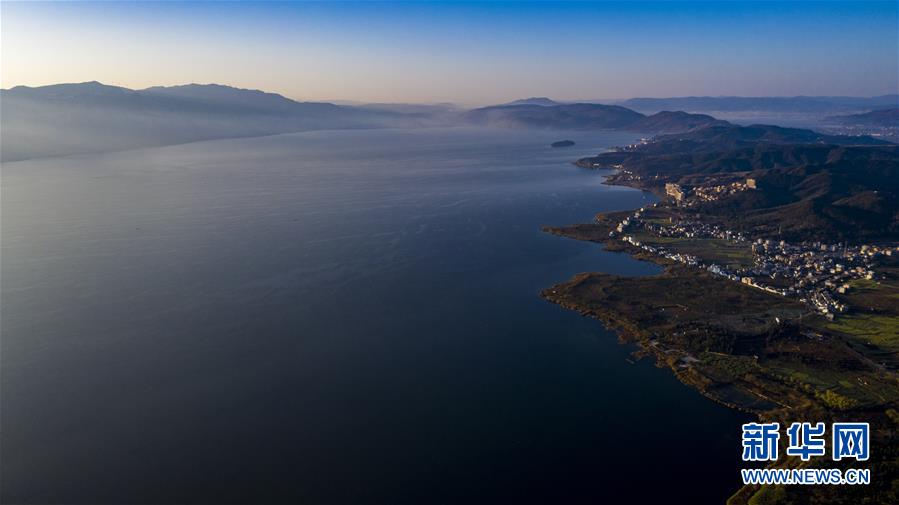 空中俯瞰撫仙湖(無人機照片,1月10日攝)。 來自云南省玉溪市撫仙湖管理局的數(shù)據(jù)顯示,撫仙湖2019年度保持一類水質(zhì),總磷、總氮等數(shù)值較2018年有所下降。 新華社記者 江文耀 攝