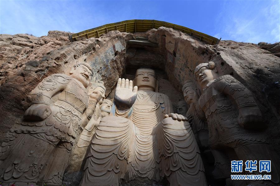 1月11日拍攝的天梯山石窟13號窟。位于甘肅省武威市的天梯山是祁連山東線的一條支脈,開鑿于巖壁上的天梯山石窟始建于東晉十六國時期的北涼,距今約有1600年歷史,是我國早期石窟藝術(shù)的杰出代表。新華社記者馬寧攝
