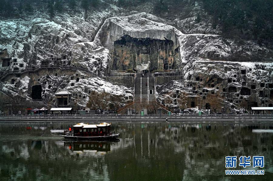 當(dāng)日,雪后的河南洛陽(yáng)龍門石窟景區(qū)銀裝素裹,一幅天然的水墨畫卷徐徐展開。