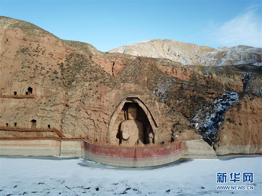 這是1月11日拍攝的天梯山石窟(無人機照片)。新華社記者馬寧攝