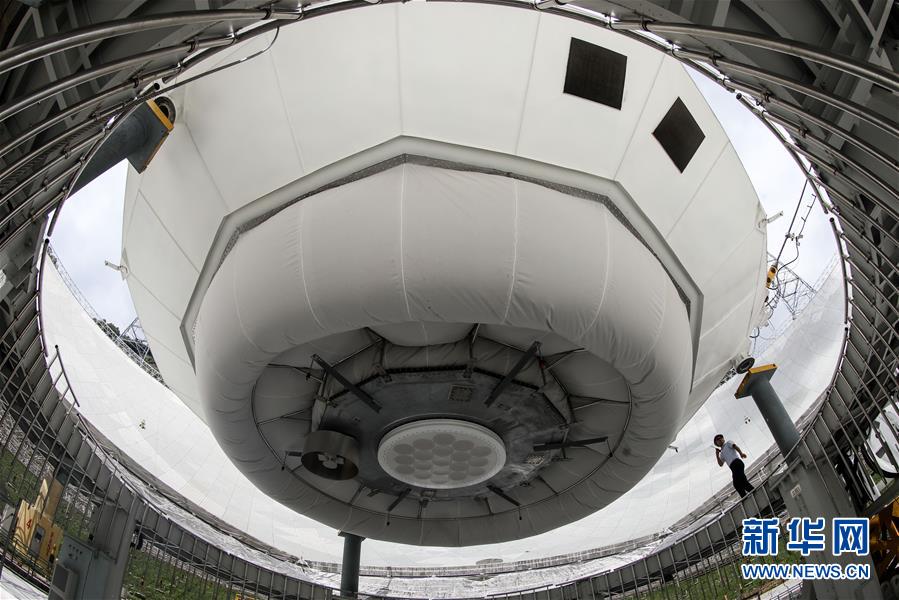 8月28日,工作人員在引導(dǎo)FAST饋源艙下降以進(jìn)行檢修。新華社記者歐東衢攝