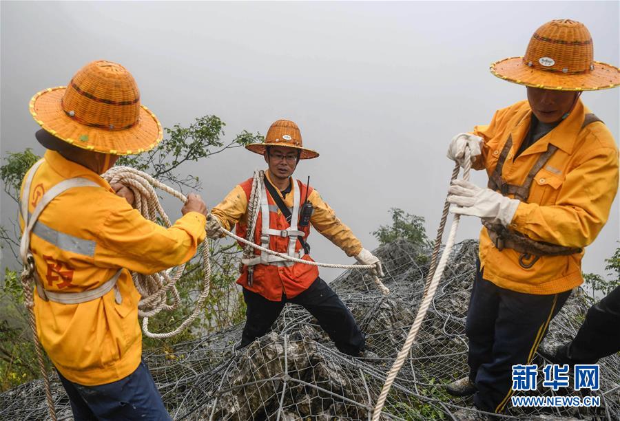 1月14日,百色工務(wù)段白水河橋隧工區(qū)班組工長王勇(右一)和同事在處理危石。在中國鐵路南寧局集團公司百色工務(wù)段白水河橋隧工區(qū),有一個由14名工人組成的班組。他們常年像“爬山虎”一樣行走攀爬在地形險峻、云霧繚繞的高山上,負責(zé)南昆鐵路轄區(qū)路段的搜山掃石工作,清除一切可能危害鐵路行車安全的因素,保障旅客出行安全。新華社記者張愛林?jǐn)z