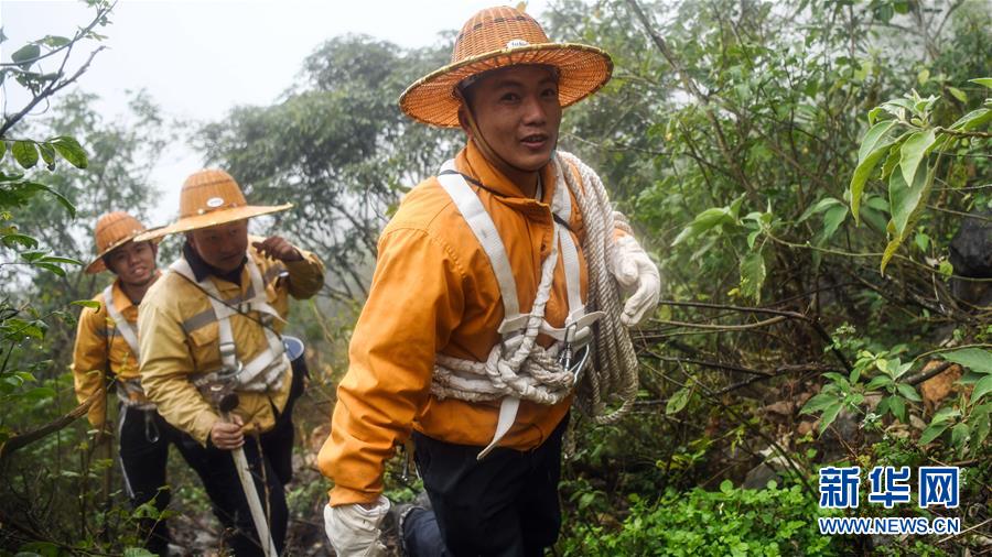 1月14日,百色工務(wù)段白水河橋隧工區(qū)班組成員在搜山掃石。在中國鐵路南寧局集團公司百色工務(wù)段白水河橋隧工區(qū),有一個由14名工人組成的班組。他們常年像“爬山虎”一樣行走攀爬在地形險峻、云霧繚繞的高山上,負責(zé)南昆鐵路轄區(qū)路段的搜山掃石工作,清除一切可能危害鐵路行車安全的因素,保障旅客出行安全。新華社記者張愛林?jǐn)z