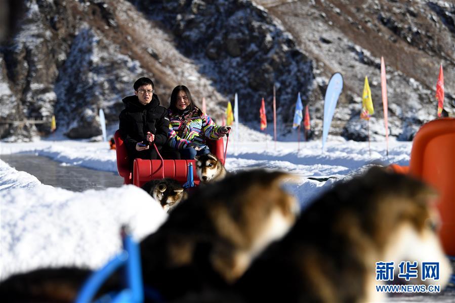 1月18日,游客在新疆天池景區(qū)玩冰上爬犁。新華社記者 沙達提 攝