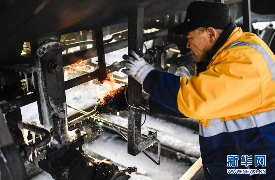 因為冬季溫度過低,送水員黃衛(wèi)東在蓄水前需要提前加熱閥門(1月17日攝)。新華社記者許暢攝