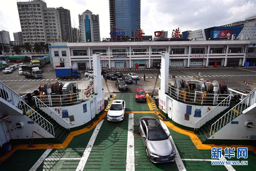 1月19日,車輛在海口秀英港輪渡碼頭登船。 新華社記者 郭程 攝