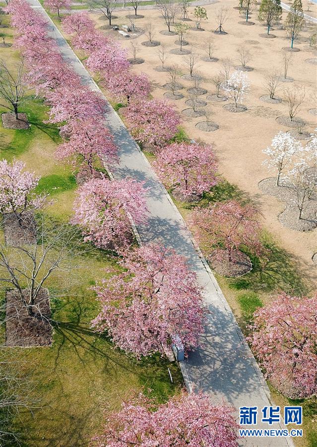 這是2月24日在上海松江辰山植物園內(nèi)拍攝的櫻花小徑(無(wú)人機(jī)照片)。 新華社記者 方喆 攝