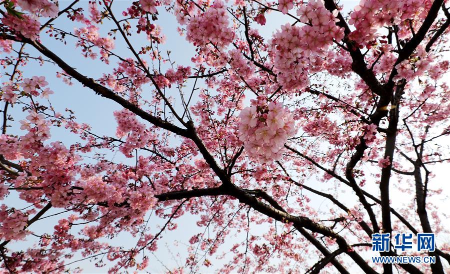 這是2月24日在上海松江辰山植物園內(nèi)拍攝的河津櫻。 新華社記者 方喆 攝