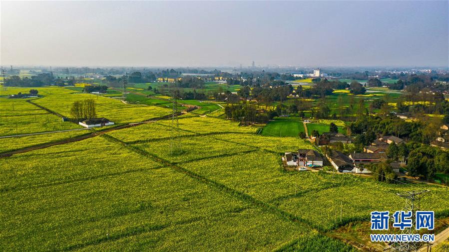 2月24日在四川省大邑縣安仁鎮(zhèn)永興村拍攝的油菜花田(無(wú)人機(jī)照片)。新華社記者王曦?cái)z