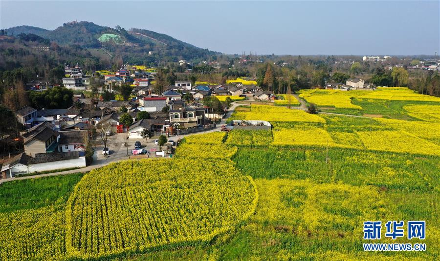 2月25日在四川省崇州市拍攝的油菜花田(無人機照片)。新華社記者王曦攝