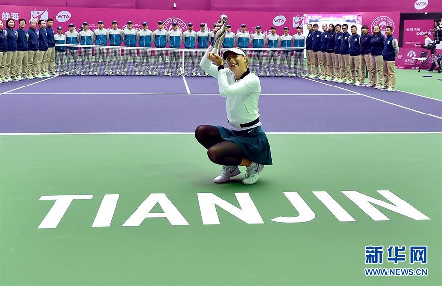 圖為2017年10月15日,莎拉波娃在2017年WTA天津網(wǎng)球公開(kāi)賽單打決賽中戰(zhàn)勝白俄羅斯選手薩巴倫卡,獲得冠軍。 新華社記者岳月偉攝