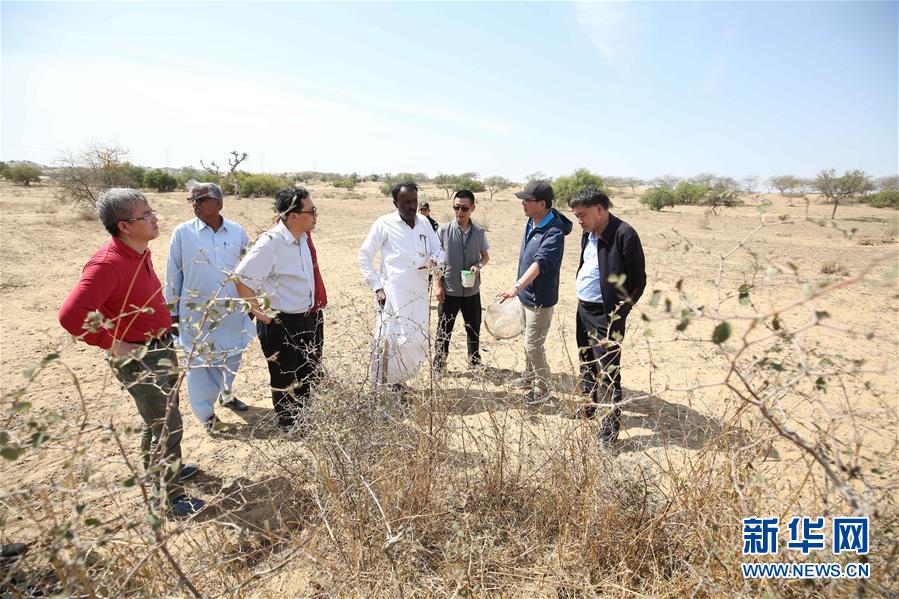 2月26日,在巴基斯坦信德省,中國蝗災(zāi)防治工作組專家與當(dāng)?shù)刂位裙ぷ魅藛T交談。新華社記者劉天攝