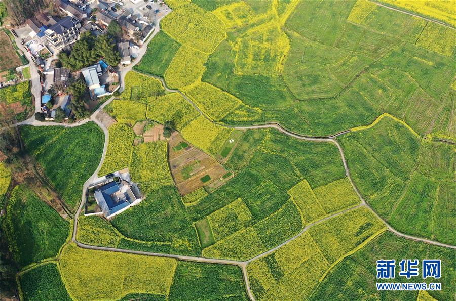 2月25日在四川省崇州市拍攝的油菜花田(無人機照片)。新華社記者王曦攝
