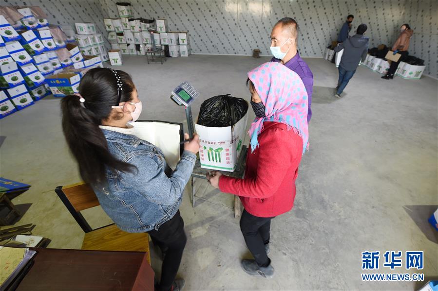 3月4日,在靖遠縣北灣鎮(zhèn)新坪村農(nóng)貿(mào)市場,收購商收購農(nóng)民采摘的黃瓜。新華社記者 范培珅 攝