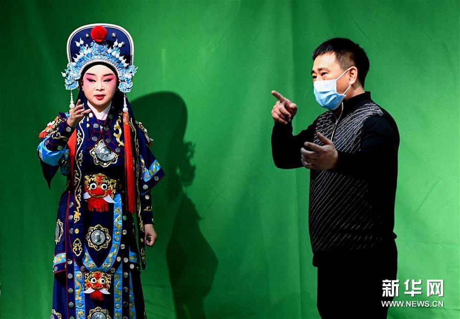 3月3日,李金玲在鄭州文化館通過(guò)直播的形式進(jìn)行帶妝表演豫劇《花木蘭》選段。李金玲是鄭州工程技術(shù)學(xué)院音樂(lè)舞蹈學(xué)院的教授,也是豫劇常派弟子。14歲開(kāi)始學(xué)習(xí)豫劇的她師從豫劇大師常香玉的次女陳小香。多年來(lái),除了本職工作教學(xué)外,她還作為文化志愿者,到各地義務(wù)表演、授課,致力于豫劇的傳承與發(fā)展。疫情防控期間,鄭州文化館展開(kāi)線上文藝戰(zhàn)“疫”,開(kāi)通網(wǎng)絡(luò)直播平臺(tái),李金玲也作為志愿者走進(jìn)“直播間”,進(jìn)行帶妝表演和教學(xué),精彩的“云”上表演吸引了不少戲迷的關(guān)注。“在這個(gè)特殊時(shí)期,通過(guò)直播的形式為大家表演,希望可以讓更多的人喜歡和了解豫劇,感受它獨(dú)特的魅力?!崩罱鹆嵴f(shuō)。新華社記者 李安 攝