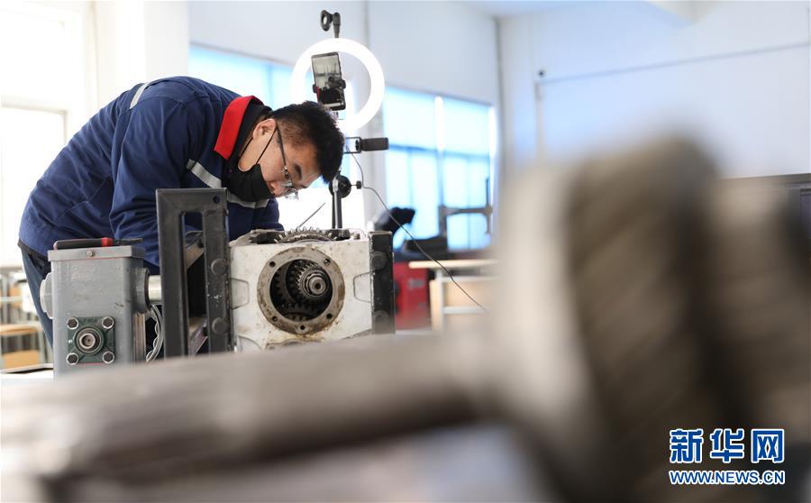 3月4日,職教城內(nèi)的鞍山市交通運輸學校的高峰老師為學生進行變速器檢修實訓網(wǎng)絡(luò)授課。遼寧省鞍山市職教城內(nèi)的各類職業(yè)教育學校從3月2日恢復網(wǎng)絡(luò)授課以來,教師們設(shè)置了豐富多彩的課程,提高1萬余名學生線上學習的積極性。新華社記者姚劍鋒 攝