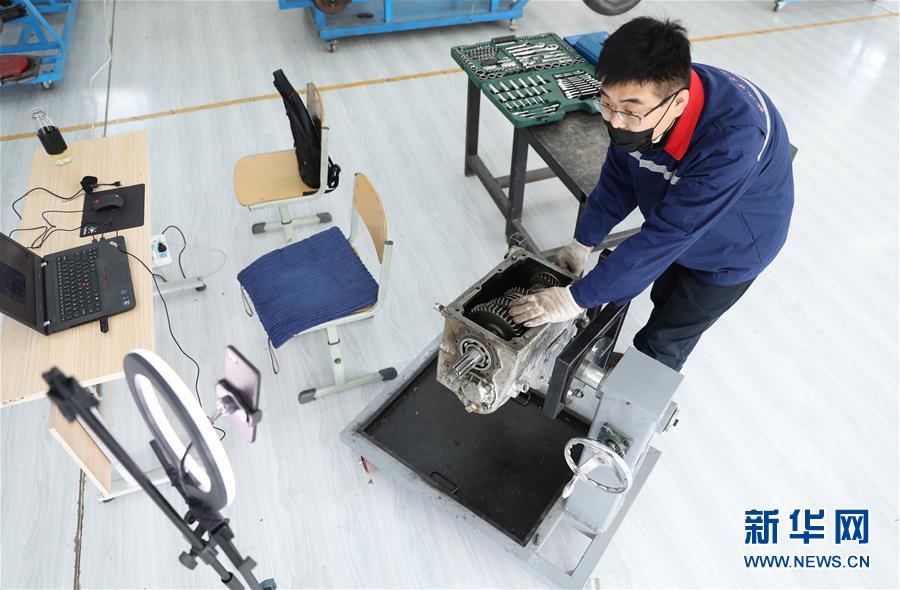 3月4日,職教城內的鞍山市交通運輸學校的高峰老師為學生進行變速器檢修實訓網(wǎng)絡授課。遼寧省鞍山市職教城內的各類職業(yè)教育學校從3月2日恢復網(wǎng)絡授課以來,教師們設置了豐富多彩的課程,提高1萬余名學生線上學習的積極性。新華社記者姚劍鋒 攝