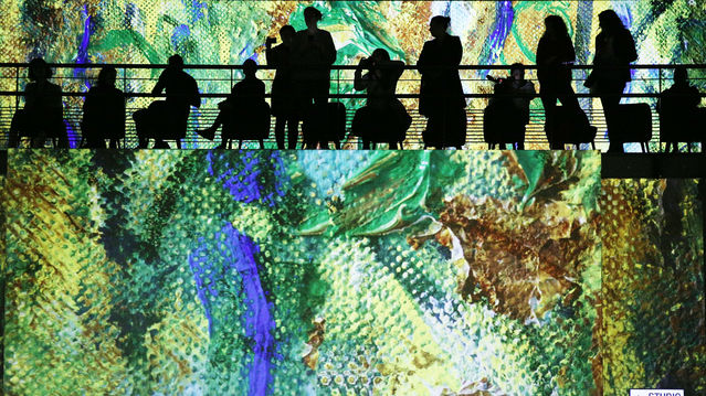 2月27日,在法國(guó)巴黎,人們?cè)凇稄哪?、雷諾阿到夏加爾:地中海之旅》光影藝術(shù)沉浸展的媒體預(yù)展上參觀?!稄哪?、雷諾阿到夏加爾:地中海之旅》光影藝術(shù)沉浸展將于2020年2月28日至2021年1月3日在法國(guó)巴黎舉行。展覽利用數(shù)碼投影技術(shù)為觀眾展示包括莫奈、雷諾阿、夏加爾等在內(nèi)的20位藝術(shù)大師關(guān)于地中海題材的代表作,讓觀眾沉浸在從印象派到現(xiàn)代主義畫作的視聽享受中。新華社記者高靜攝