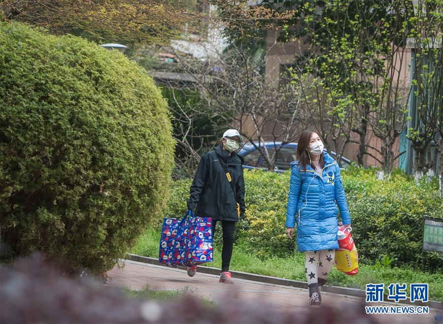 3月12日,小區(qū)樹葉綠了,黎婧(右)與網(wǎng)格員走在回家路上。 3月12日,插畫師黎婧和84位病友離開自己居住的武漢軟件工程職業(yè)學院康復驛站,回到自己家中。他們都是治愈出院的新冠病毒肺炎患者,已經(jīng)在武漢軟件工程職業(yè)學院康復驛站進行了14天醫(yī)學觀察,達到醫(yī)學標準,成功解除隔離。他們由專車運送至所屬社區(qū)附近的集散點后,在社區(qū)工作人員的陪同下回家。 新華社記者 肖藝九 攝