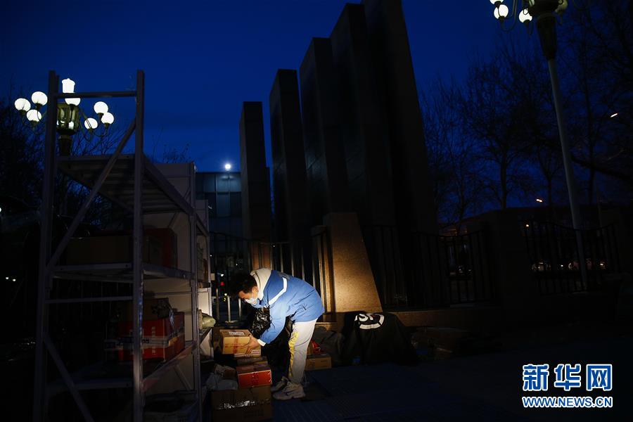 3月12日,李杰在中國青年政治學(xué)院快遞點(diǎn)查看仍未領(lǐng)取的包裹。新華社記者張玉薇攝