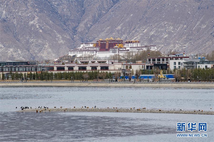 拉薩河中休憩的水鳥(niǎo)(3月14日攝)。新華社記者孫非攝