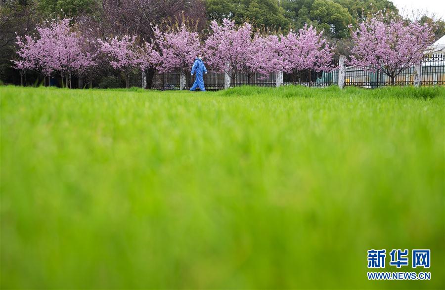 3月14日,游客在武漢東湖磨山櫻園游玩。近日氣溫漸升,武漢東湖磨山櫻園里的櫻花漸次盛開,帶來春天的氣息。新華社記者熊琦攝