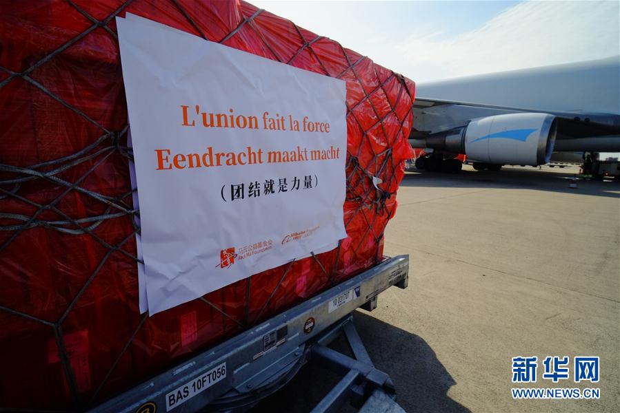 來自中國的30萬只口罩當(dāng)?shù)貢r間16日中午運抵比利時列日機(jī)場。 新華社記者 張鋮 攝