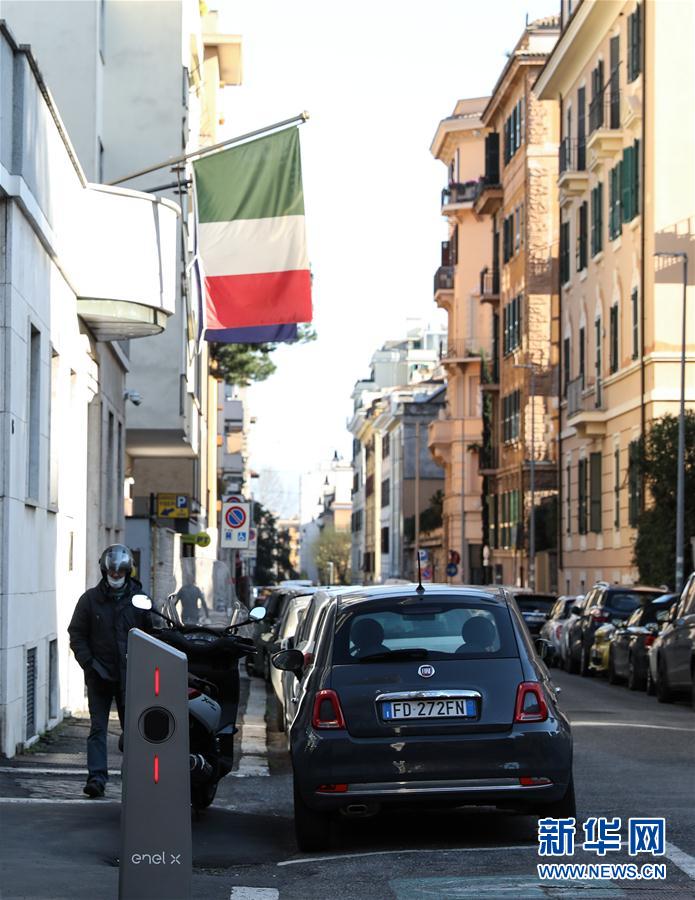3月15日,在意大利首都羅馬,一名男子戴著口罩出行。新華社記者程婷婷攝