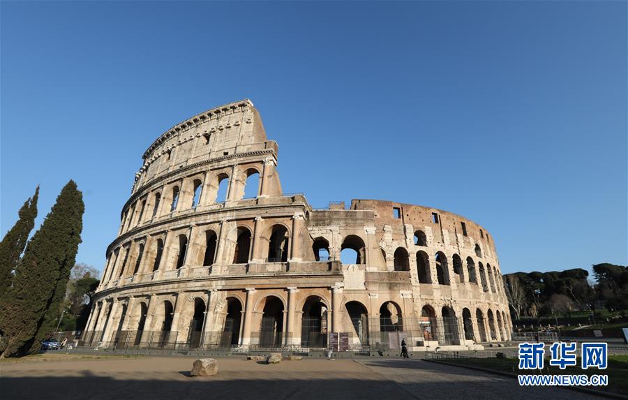 3月16日,在意大利首都羅馬,斗獸場因疫情關閉。新華社記者程婷婷攝