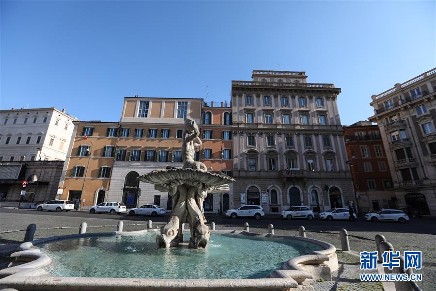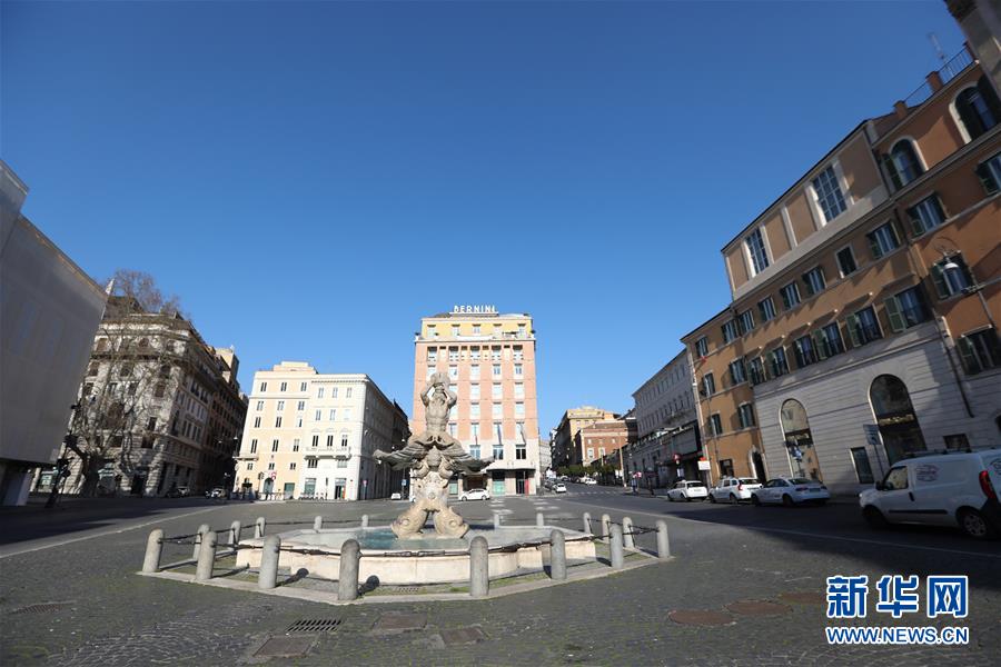 3月10日,在意大利首都羅馬,人民廣場上游人稀少。新華社記者程婷婷攝