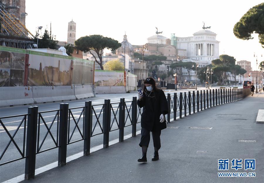 3月16日,在意大利首都羅馬,威尼斯廣場前行人寥寥。新華社記者程婷婷攝