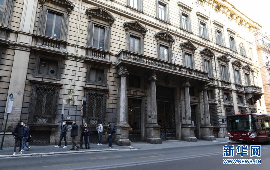 3月16日,在意大利首都羅馬,人們戴著口罩等公交車(chē)。新華社記者程婷婷攝