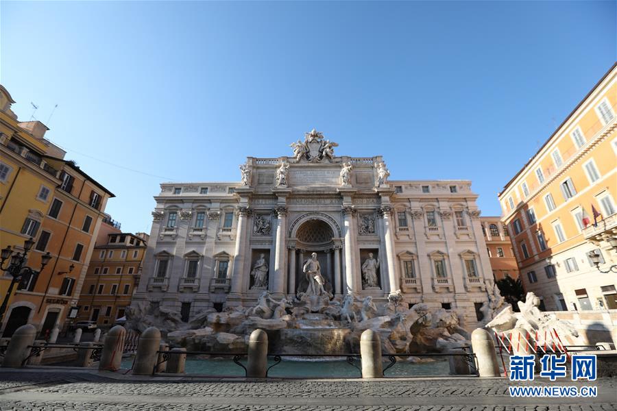 3月16日,在意大利首都羅馬,因疫情關閉的許愿池前無游人。新華社記者程婷婷攝