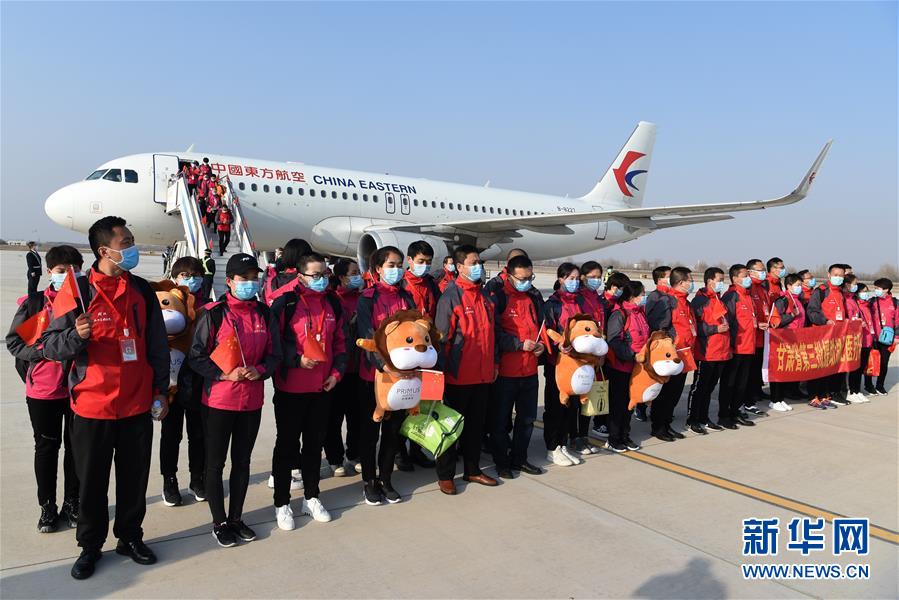 3月17日,醫(yī)療隊隊員抵達(dá)甘肅蘭州中川國際機(jī)場。新華社記者范培珅攝