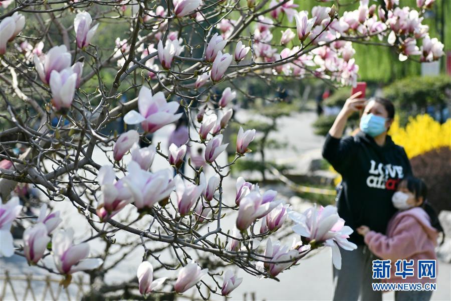 3月18日拍攝的百花公園內(nèi)盛開的玉蘭花。